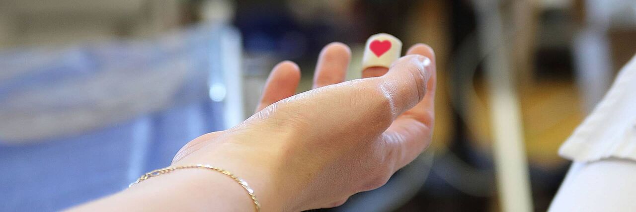 Nun folgt die eigentliche Blutspende. Nach einem kleinen Pieks durch das medizinische Fachpersonal werden Ihnen 500 ml Blut entnommen. Das dauert ungefähr 10 Minuten. Nach der Spende werden Sie mit einem Pflaster oder einem kleinen Verband an der Punktionsstelle versorgt.